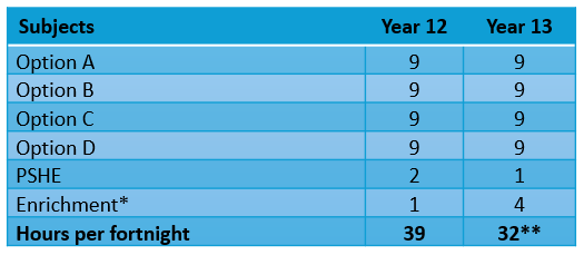 * Y12 Enrichment is Games/PE. Y13 Enrichment includes Games/PE, EPQ and Work Experience