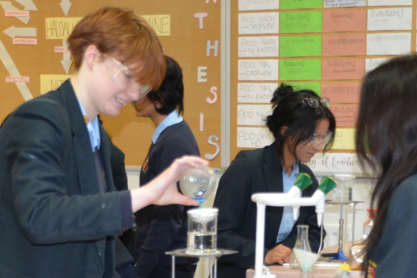 Our aim is to develop students' skills in carrying out scientific investigations and answering scientific questions, this is rooted in learning scientific theory and conducting a range of practical activities. Our curriculum is designed to build students' skills and knowledge, gradually moving from Year 7 through to the end of Year 13. To begin, students will learn how to carry out investigations, focusing on planning, writing, graph-work and forming conclusions and evaluations, along with how to work safely in a lab. They will use their chemical knowledge to then develop these skills as they progress through our curriculum, along with deepening their knowledge. We envisage our leaving students to be well-rounded scientists who have deep-rooted scientific skills that they are able to apply to new problems which have relevance in the wider world.