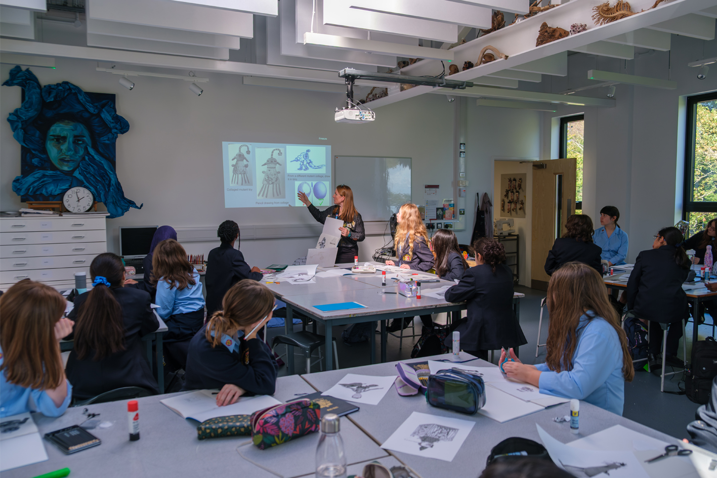Our aim is for all students to leave their lessons with more than technical skills alone. We hope that they will be confident to use their imagination whilst also improving their knowledge and analysis by means of contextual study. We encourage them to learn to question beyond the pure aesthetics of Art.