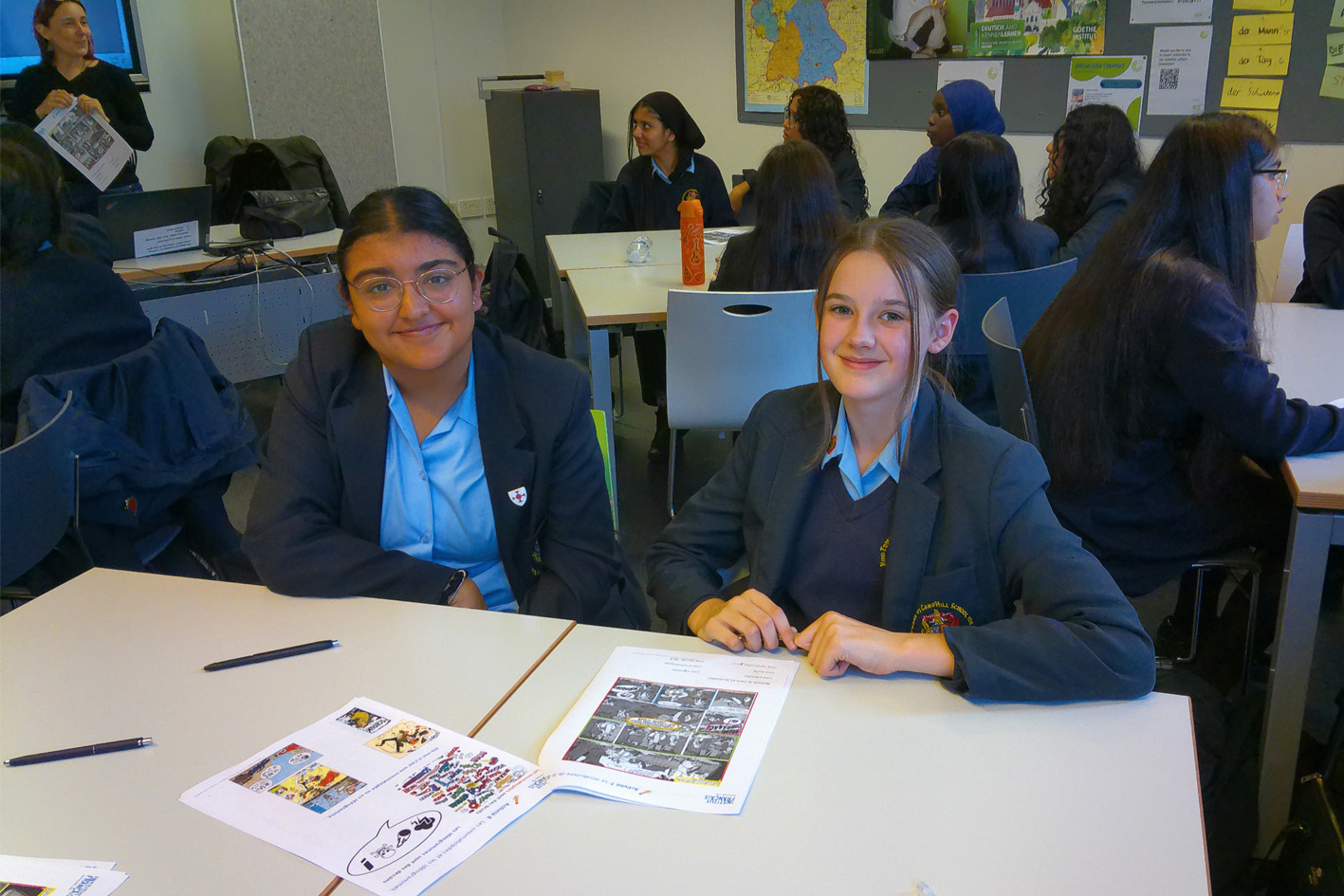 Our students learn two out of three modern languages (French, German or Spanish) in Key Stage 3. Our three-year curriculum allows students to build progressively upon their knowledge and skills so that they are able to study one or two languages successfully for GCSE. We teach a two-year Key Stage 4 programme of study, which prepares students to make a successful transition to A Level.