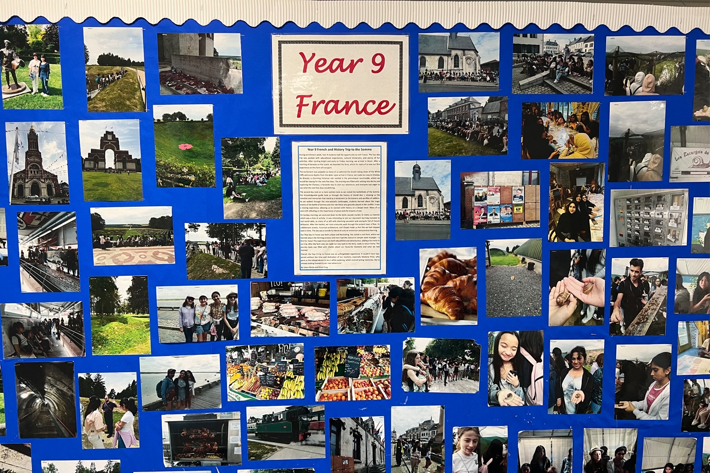 • A Year 9 French/History residential visit to the Somme region, where students stay in a château and enjoy outdoor activities, along with tours of historical sites of interest and authentic practice of what they have learned in their French lessons;
